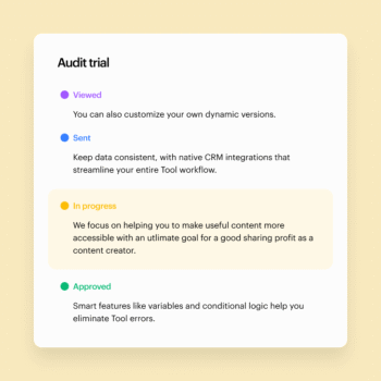 Improve security and trust with built-in legally binding e-Signatures. Create pre-approved templates, content blocks and lock all legal information to prevent costly mistakes.